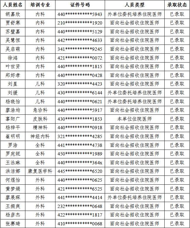 根據(jù)我院2022年4月2日發(fā)布的2022年第一批住院醫(yī)師規(guī)范化培訓(xùn)招生公告,經(jīng)筆試和面試考核決定錄取胡嘉欣等44人為我院住院醫(yī)師規(guī)范化培訓(xùn)學(xué)員?,F(xiàn)予以公示。人員姓名培訓(xùn)專業(yè)證件號碼人員類型錄取狀態(tài)胡嘉欣內(nèi)科4405943外單位委托培養(yǎng)住院醫(yī)...閱讀全文