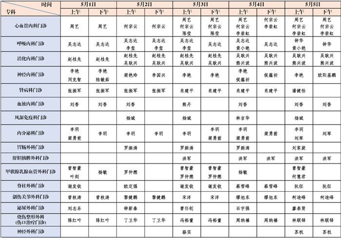 2021-04-28【出診安排】“五·一”國(guó)際勞動(dòng)節(jié)我院門診出診安排