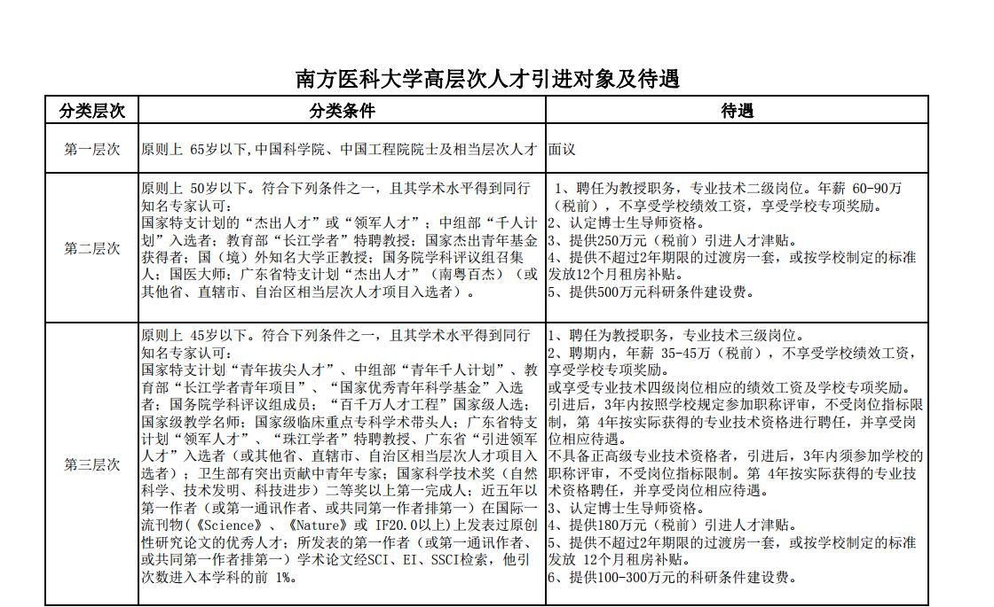 2017-07-17南方醫(yī)科大學(xué)高層次人才引進(jìn)對(duì)象及待遇