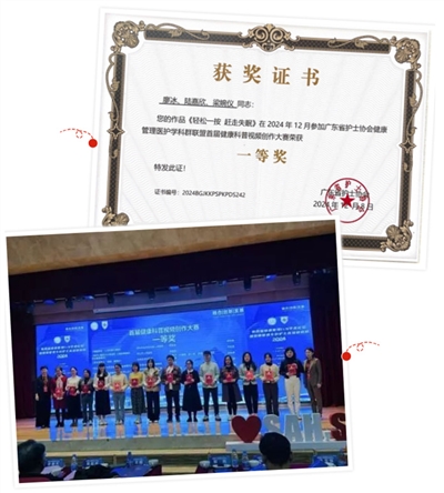 近日,由廣東省護士協(xié)會健康管理醫(yī)護學(xué)科群聯(lián)盟主辦的首屆健康科普視頻創(chuàng)作大賽落下帷幕。其中我院健康管理科護理團 隊精心制作的《輕松一按,趕走失眠》短視頻榮獲大賽一等獎。閱讀全文