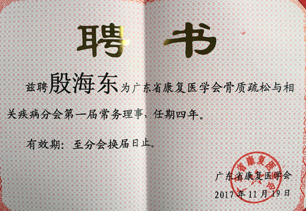 2017-11-27殷海東當(dāng)選為省康復(fù)醫(yī)學(xué)會(huì)骨質(zhì)疏松分會(huì)常務(wù)理事