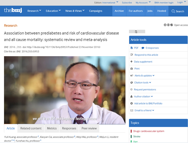 英國(guó)時(shí)間11月23日23時(shí)(北京時(shí)間約11月24日7時(shí)30分),全球著名的四大頂級(jí)醫(yī)學(xué)期刊之一的《英國(guó)醫(yī)學(xué)雜志(BMJ)》,在線發(fā)表了一篇論文,這篇論文的題目為《糖尿病前期與心血管疾病和全因死亡的相關(guān)性》。同時(shí),BMJ編輯部通過新聞發(fā)布會(huì)的...閱讀全文