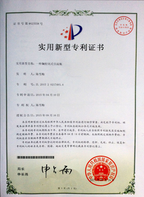 9月16日,我院心胸乳腺外科護士陳雪梅的一項護理技術(shù)獲得了中華人民共和國國家知識產(chǎn)權(quán)局頒發(fā)的實用新型專利,專利證書于近期送到了陳雪梅護士手中。 此項專利“一種胸腔閉式引...閱讀全文