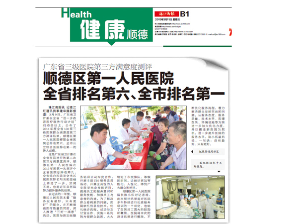 3月9日,廣東省衛(wèi)健委在全省“進(jìn)一步改善醫(yī)療服務(wù)行動計劃”啟動會議上,公布了2014年度全省130家三級醫(yī)院群眾滿意度第三方測評結(jié)果,順德區(qū)第一人民醫(yī)院獲全省醫(yī)院總排名第六,全市公立綜合醫(yī)院排名第一的驕人成績。喜訊傳來,附屬陳村醫(yī)院全體員工...閱讀全文