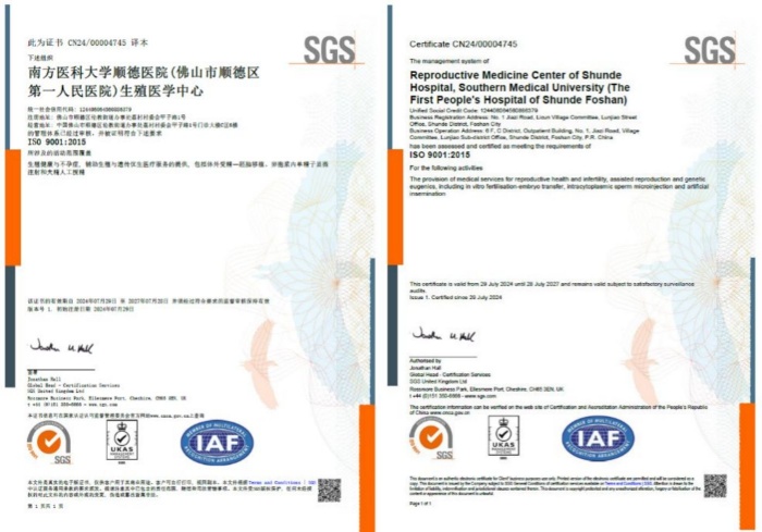 2024-08-15里程碑成就!南方醫(yī)科大學(xué)順德醫(yī)院生殖中心榮獲ISO9...
