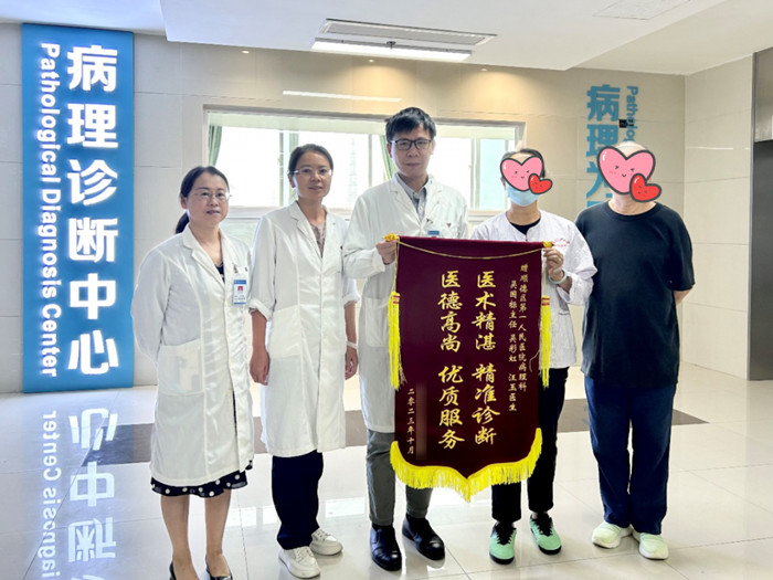 “醫(yī)術(shù)精湛,精準(zhǔn)診斷;醫(yī)德高尚,優(yōu)質(zhì)服務(wù)”這是10月17日,在南方醫(yī)科大學(xué)順德醫(yī)院病理科,患者孫女士攜家屬送來(lái)一面錦旗上的字句。他們衷心感謝病理科的吳國(guó)標(biāo)主任、吳彩虹、汪玉醫(yī)師的精湛醫(yī)術(shù)和將心比心的態(tài)度,幫她重拾信心、戰(zhàn)勝了病魔,重獲健康。...閱讀全文