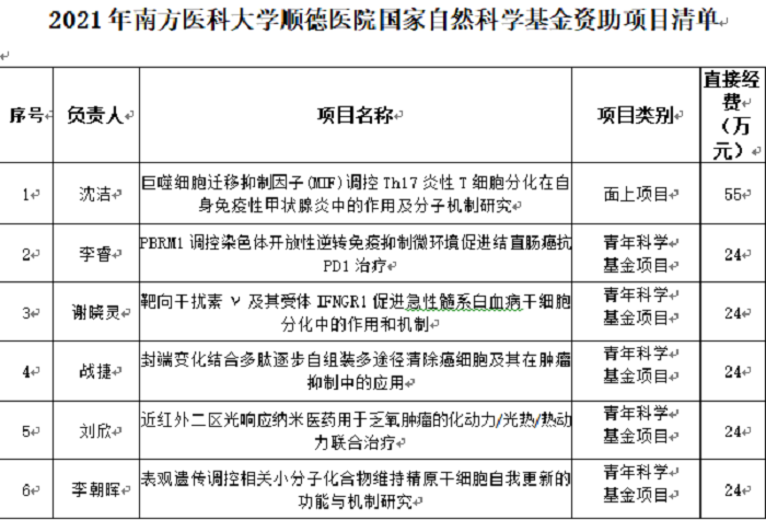 2021-08-23南方醫(yī)科大學(xué)順德醫(yī)院國家自然科學(xué)基金項(xiàng)目立項(xiàng)再創(chuàng)佳績
