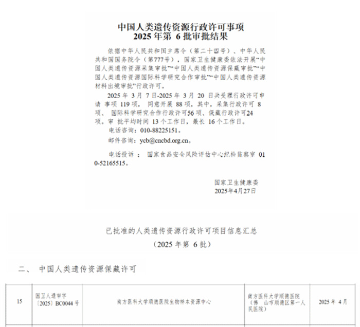 2025-05-12喜訊!我院生物樣本資源中心獲批國家衛(wèi)健委人類遺傳資源...