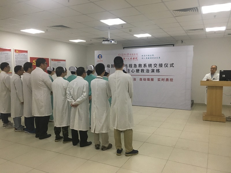 2019-04-17胸痛中心舉行“扁鵲飛救”系統(tǒng)交付儀式暨救治演練活動