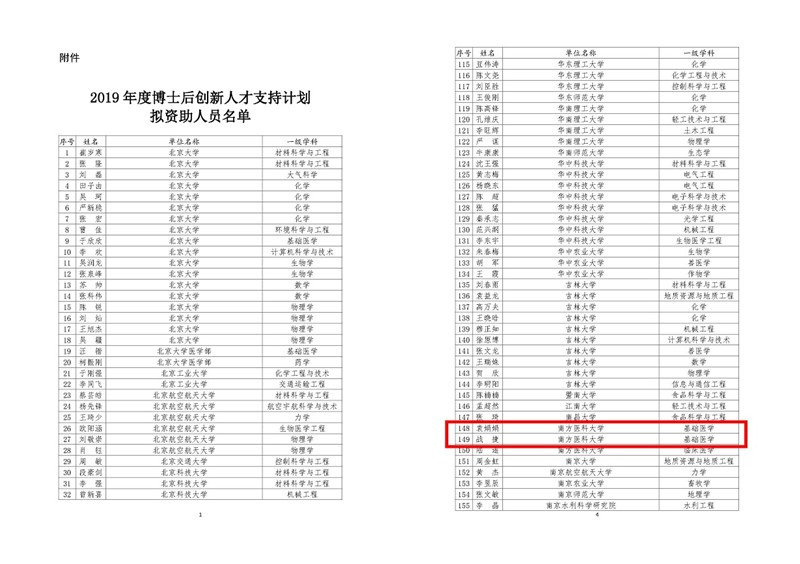 ???? 4月9日,全國博士后管委會辦公室和中國博士后科學(xué)基金會公布了2019年度“博士后創(chuàng)新人才支持計劃”(以下簡稱“博新計劃”)資助人員名單,南方醫(yī)科大學(xué)共3人入選,其中袁娟娟、戰(zhàn)捷為我院全職博士后,實現(xiàn)我院在該計劃中零的突破。????...閱讀全文