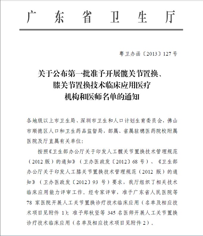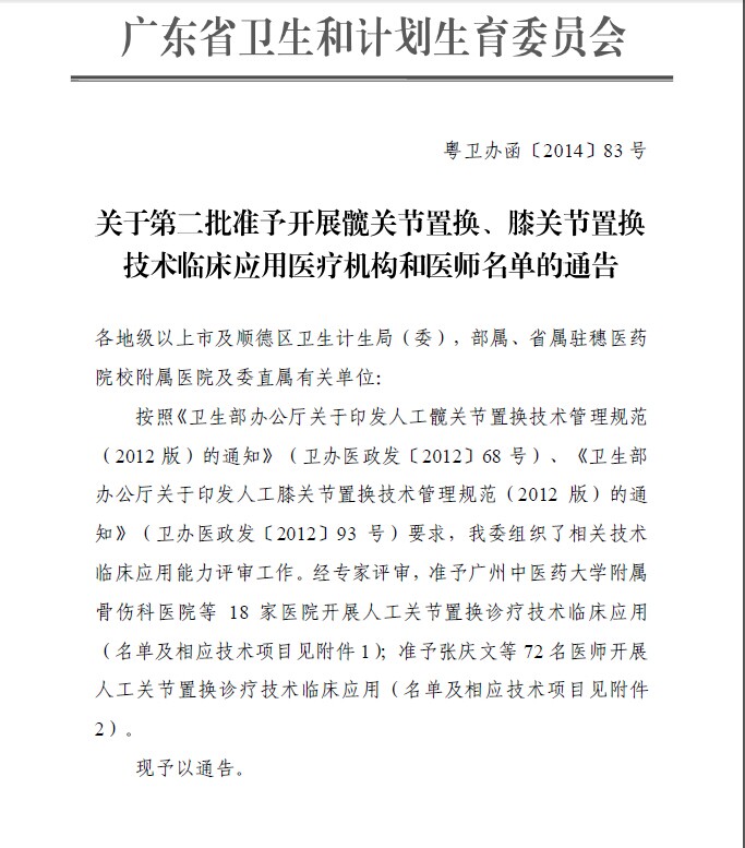 2014-12-22關于公布第一批準予開展髖關節(jié)置換、膝關節(jié)置換技術臨床...