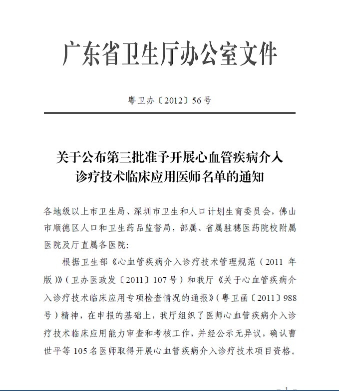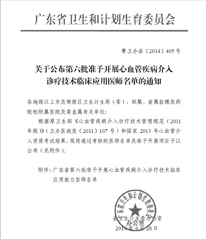 2014-12-22關于公布第四批準予開展心血管疾病介入診療技術醫(yī)師名單...
