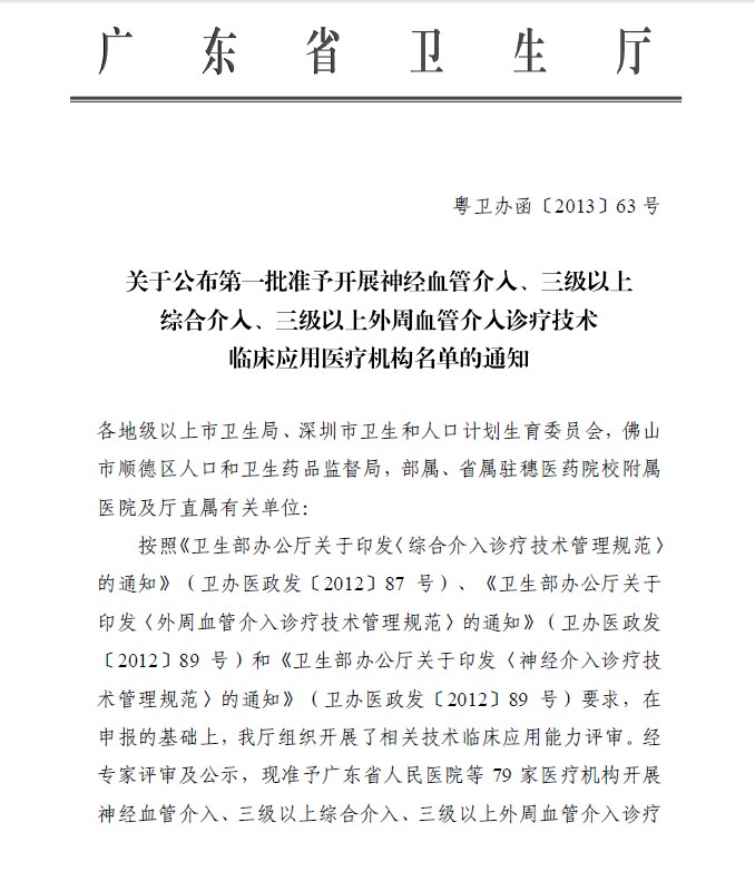 2014-12-22關于公布第一批準予開展神經血管介入、三級以上綜合介入...