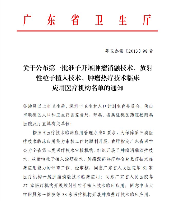 2014-12-22關于公布第一批準予開展腫瘤消融技術、放射性粒子植入技...