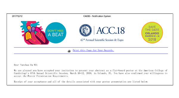 2017-12-28邁向國際:4篇心血管病學(xué)論文同時(shí)獲美國心血管病學(xué)年會...
