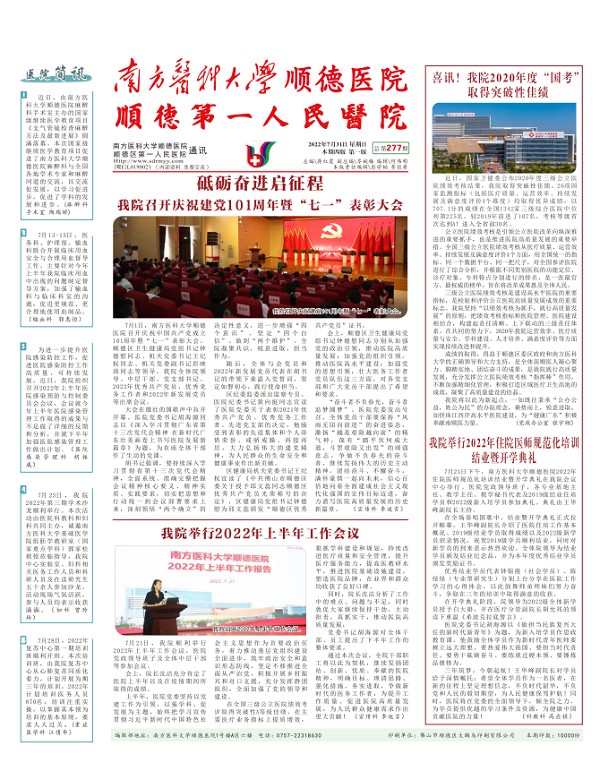 2022-07-012022年6月醫(yī)院通訊(總第276期)