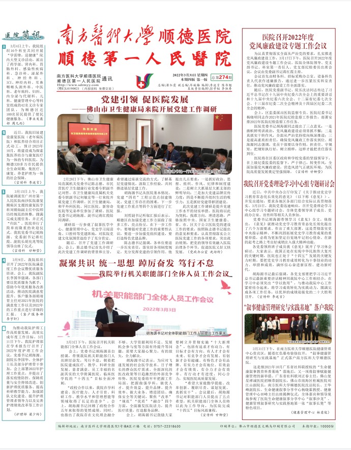 2022-06-302022年1-3月醫(yī)院通訊(總第274期)