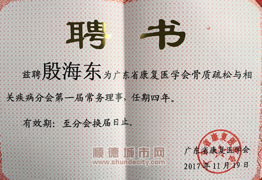 2017-12-11【順德城市網(wǎng)】順德醫(yī)生殷海東當(dāng)選省級分會常務(wù)理事