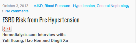 美國腎臟病雜志是美國腎臟病基金會的官方雜志,是國際腎臟病研究領域的頂尖級雜志。我們的文章發(fā)表后即受到國際同行的廣泛關注。國際血液透析網(wǎng)站hemodialysis.com專門對本研究的第一作者和通訊作者做了專訪,采訪記錄于10月3日在hemodialysis.com網(wǎng)站首頁刊登。