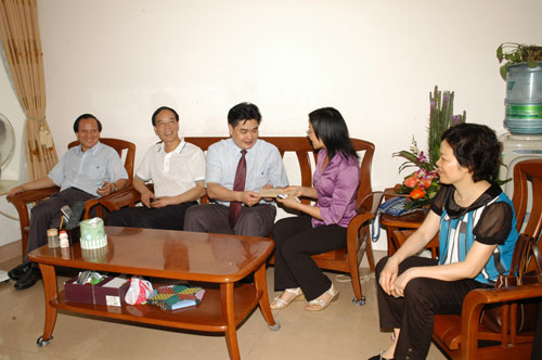 圖為醫(yī)院領導親切慰問赴川抗震救災醫(yī)師王衛(wèi)東的家屬,陳小伍院長向王衛(wèi)東醫(yī)師的妻子鐘劍萍送上了慰問金。