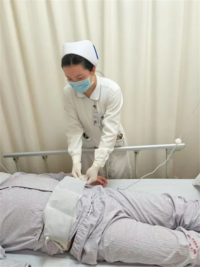 李先生起初有些疑惑,但很快,他感到一股溫暖而舒緩的感覺從腹部傳來,疼痛竟然開始逐漸減輕。他驚訝地看著小張,眼中充滿了好奇和感激。小張解釋,袋子里的是芒硝,是新開展的護(hù)理技術(shù),專門用于緩解胰腺炎患者的腹部疼痛……