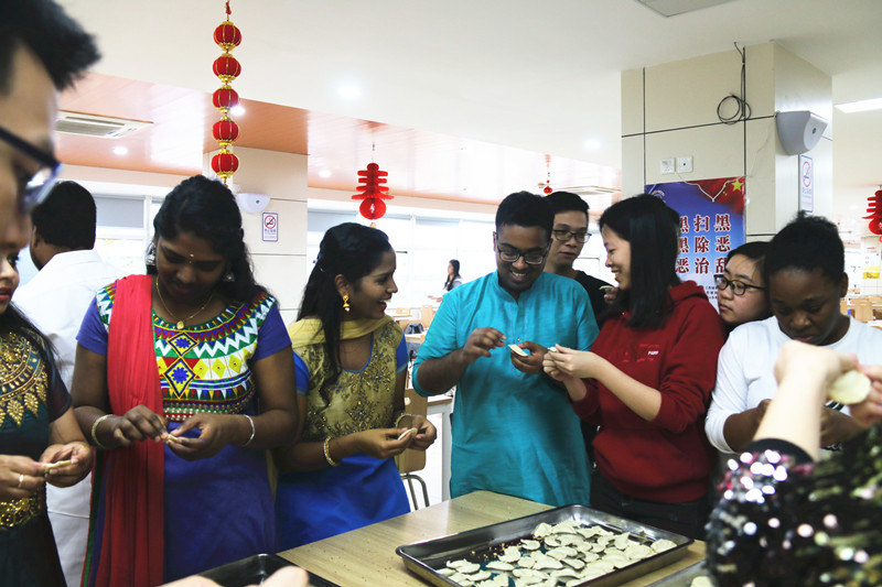 為營造濃厚的節(jié)日氣氛,晚宴特設(shè)制作春節(jié)傳統(tǒng)食品環(huán)節(jié),參加者制作油角、餃子。不少外國留學(xué)生在制作油角“首秀”中大展光彩,他們加入各自對(duì)春節(jié)的暢想,天馬行空,在一片歡聲笑語中制作獨(dú)具匠心的“春節(jié)禮物”。