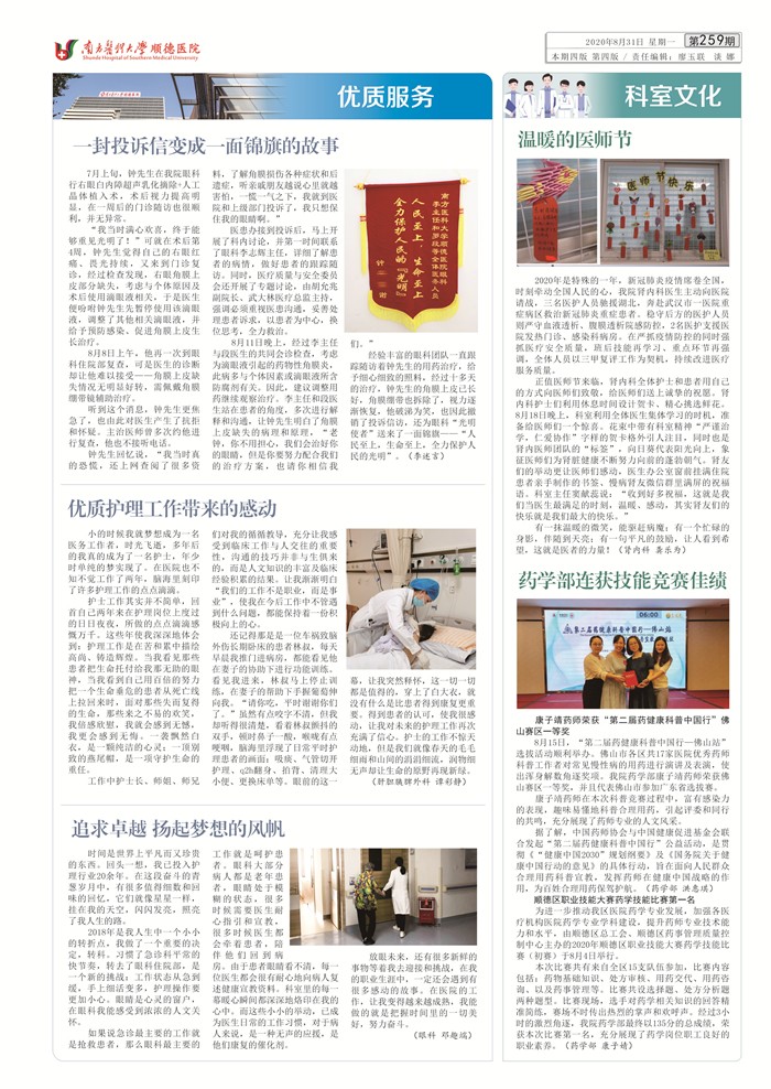 2020年8月醫(yī)院通訊(總第259期)