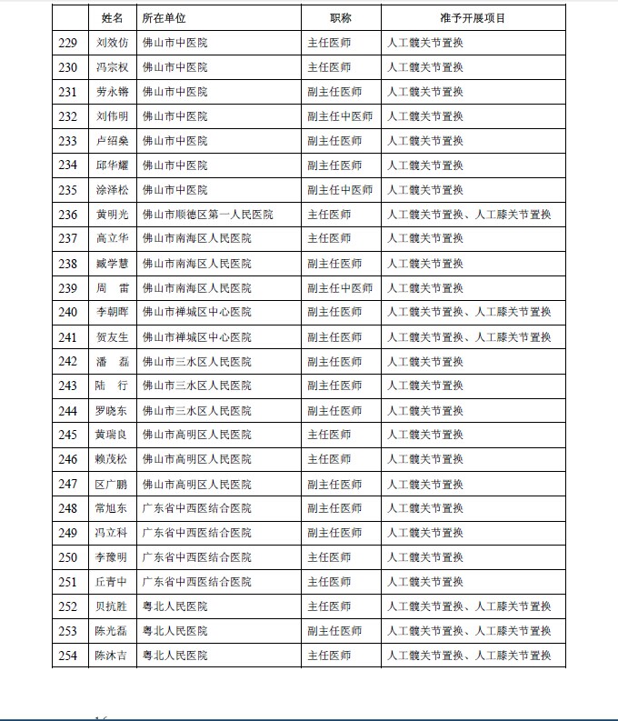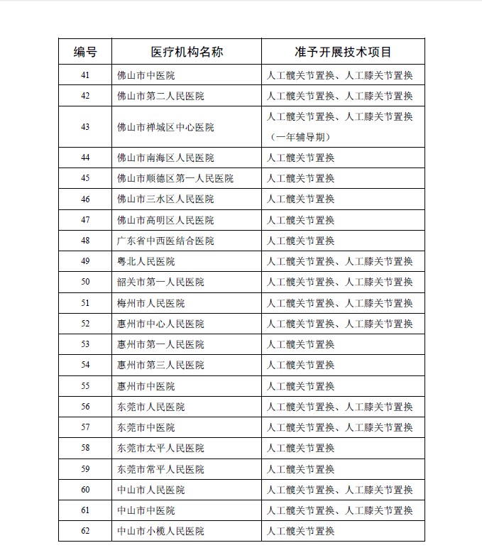 關于公布第一批準予開展髖關節(jié)置換、膝關節(jié)置換技術臨床應用醫(yī)療機構(gòu)和醫(yī)師名單的通知(黃明光)