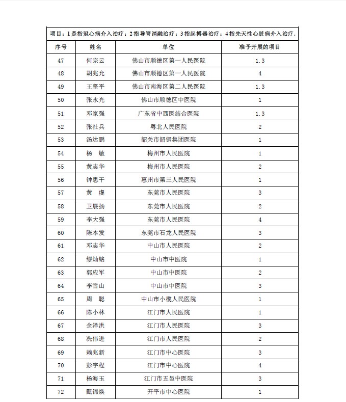 關(guān)于公布第三批準(zhǔn)予開展心血管疾病介入診療技術(shù)臨床應(yīng)用醫(yī)師名單的通知(何宗云、胡允兆)