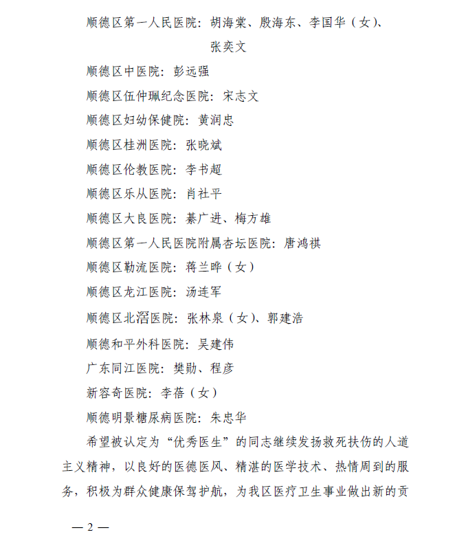 轉(zhuǎn)發(fā)順德區(qū)衛(wèi)生和計劃生育局關(guān)于認(rèn)定胡海棠等22位醫(yī)生為2015年順德區(qū)“優(yōu)秀醫(yī)生”的通知(順衛(wèi)[2015]250號)