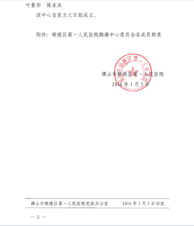 關(guān)于成立順德區(qū)第一人民醫(yī)院胸痛中心的通知