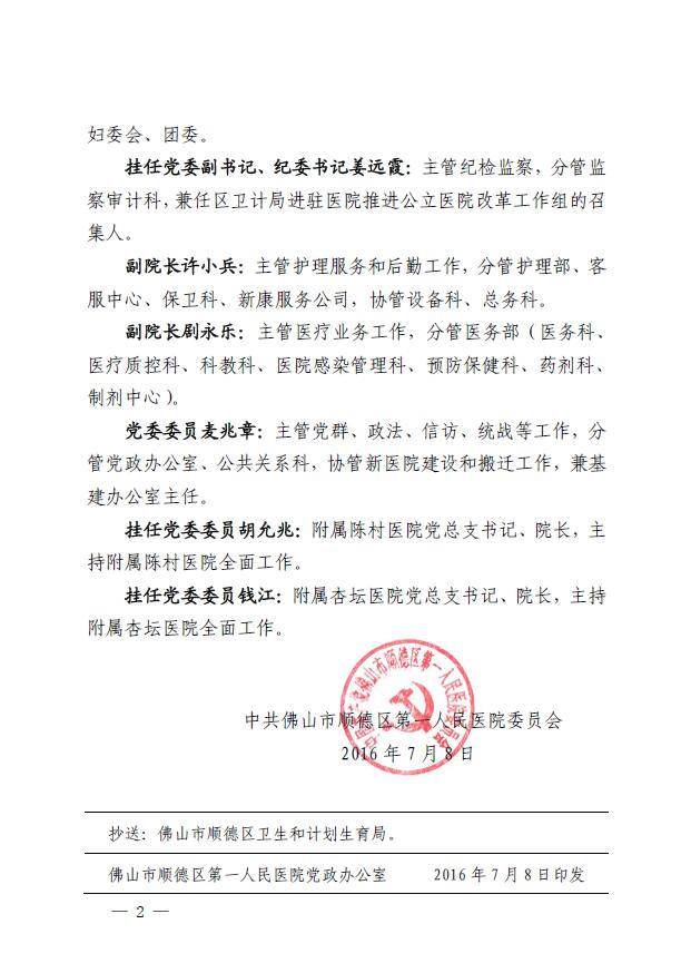 佛山市順德區(qū)衛(wèi)生和計劃生育局關(guān)于許小兵等同志職務(wù)聘任的通知(順衛(wèi)[2016]167號)
