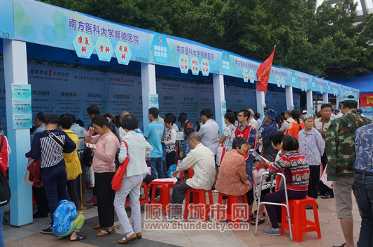 ???????10月14日上午,“健康順德全民共享——2017順德區(qū)名醫(yī)名校零距離大型巡回義診”活動容桂站在花溪公園舉行,南方醫(yī)科大學(xué)南方醫(yī)院、珠江醫(yī)院、中西結(jié)合醫(yī)院以及南方醫(yī)科大學(xué)順德醫(yī)院共派出32名專家現(xiàn)場坐診,為市民提供免費(fèi)醫(yī)療服務(wù)。
