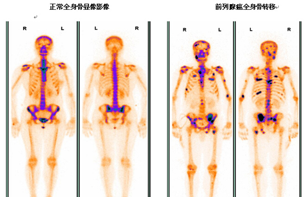 圖二:正常全身骨骼與前列腺癌全身骨骼