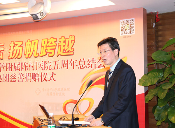 附屬陳醫(yī)院院長胡允兆在會上回顧了醫(yī)院托管五年來的發(fā)展歷程??傇涸洪L劉瑞林對附屬陳村醫(yī)院的發(fā)展給予了肯定,并了對于附屬陳村醫(yī)院今后的發(fā)展提出期望,希望醫(yī)黨的十九大精神為指導(dǎo),深挖健康中國戰(zhàn)略內(nèi)涵,堅持醫(yī)院公益性原則,推動醫(yī)院服務(wù)重心轉(zhuǎn)移,強化醫(yī)院內(nèi)涵建設(shè),努力提升醫(yī)院技術(shù)水平和服務(wù)質(zhì)量。