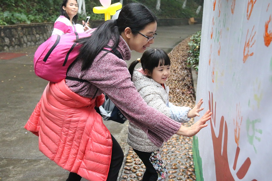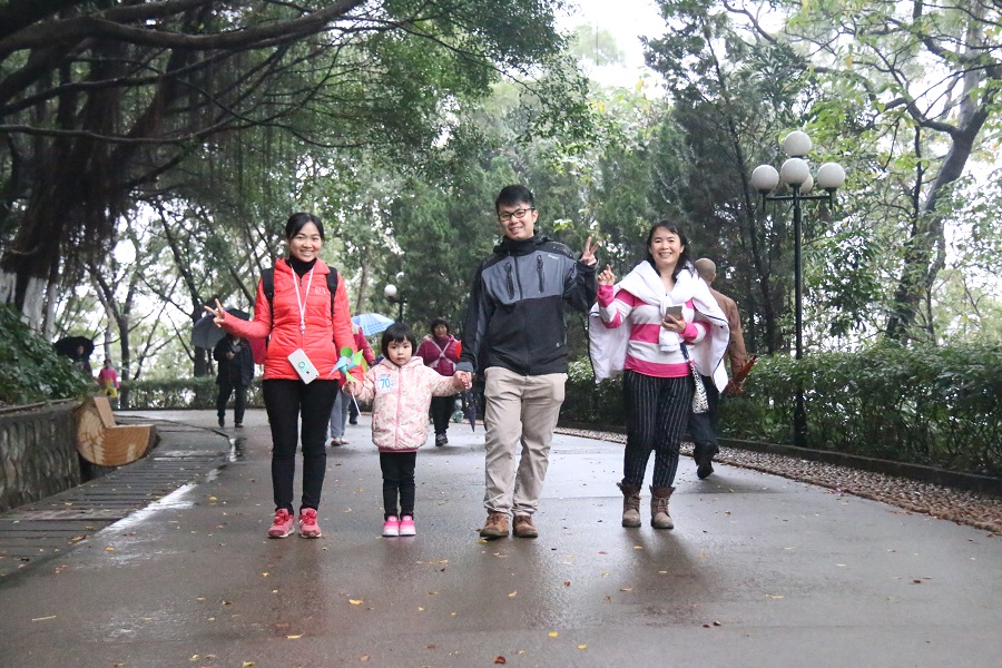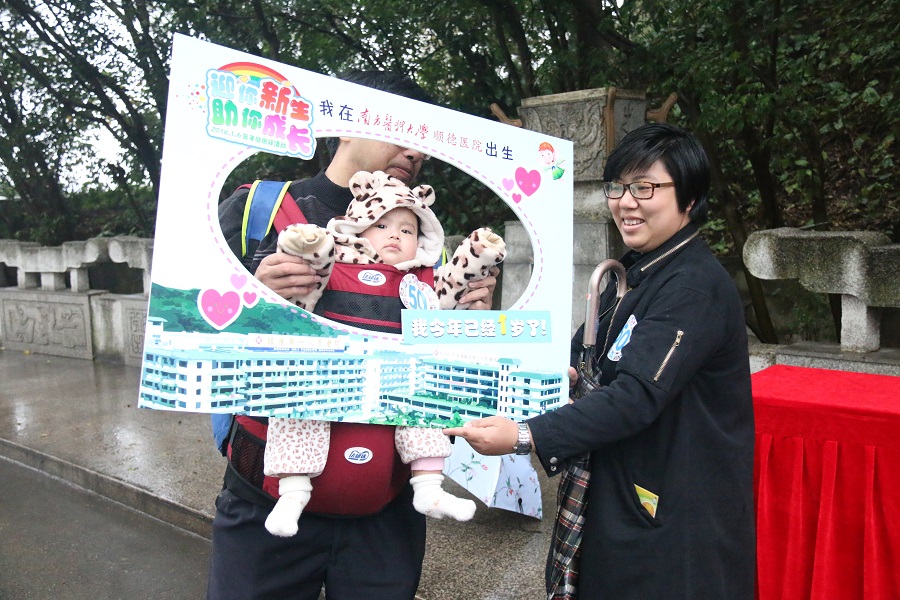 ??????? 活動當(dāng)天,細(xì)雨微寒沒有影響大家滿腔的熱情,一大早家長們就帶著孩子來到鳳嶺山公園,簽到,出發(fā),挑戰(zhàn)爬山闖關(guān)的健步行。在站點(diǎn)一,卡通小黃人與陸續(xù)到達(dá)的孩子們擊掌鼓勁,傳來一陣陣的歡呼聲;在站點(diǎn)二,“我在南方醫(yī)科大學(xué)順德醫(yī)院出生,我今年3歲了!” 孩子們拿著屬于自己的“年齡相框”拍照留念,家長們感慨時(shí)光飛逝之余,紛紛記錄下美好的一刻;在站點(diǎn)三,大家一起用環(huán)保顏料在畫板上按下手印,共同描繪出一棵欣欣向榮的大樹,充滿著新生命的蓬勃朝氣。