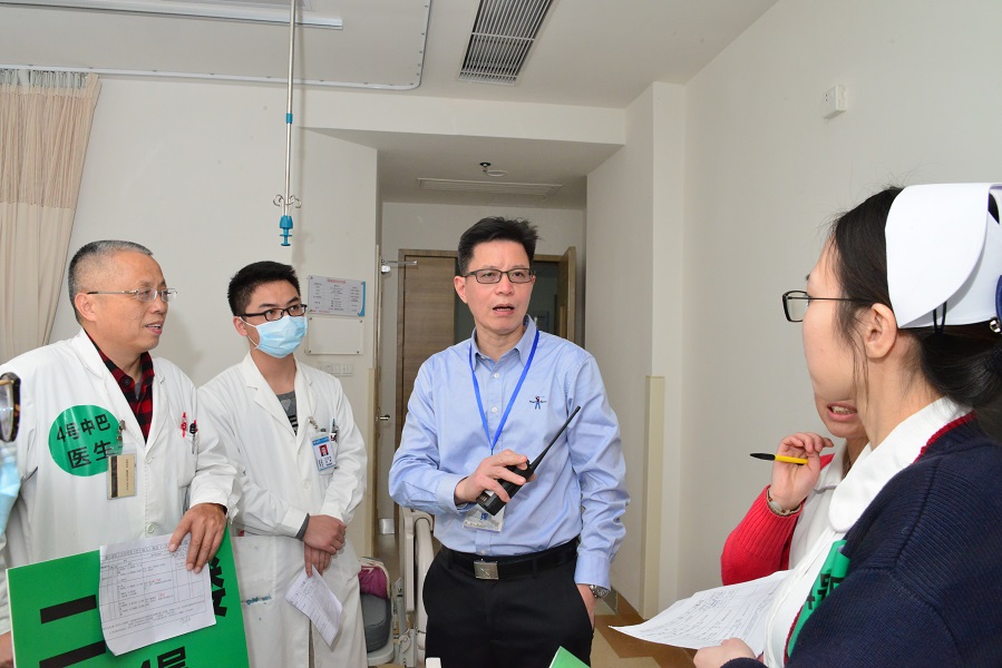 醫(yī)院院長劉瑞林(左三)在新院區(qū)調(diào)度指揮。