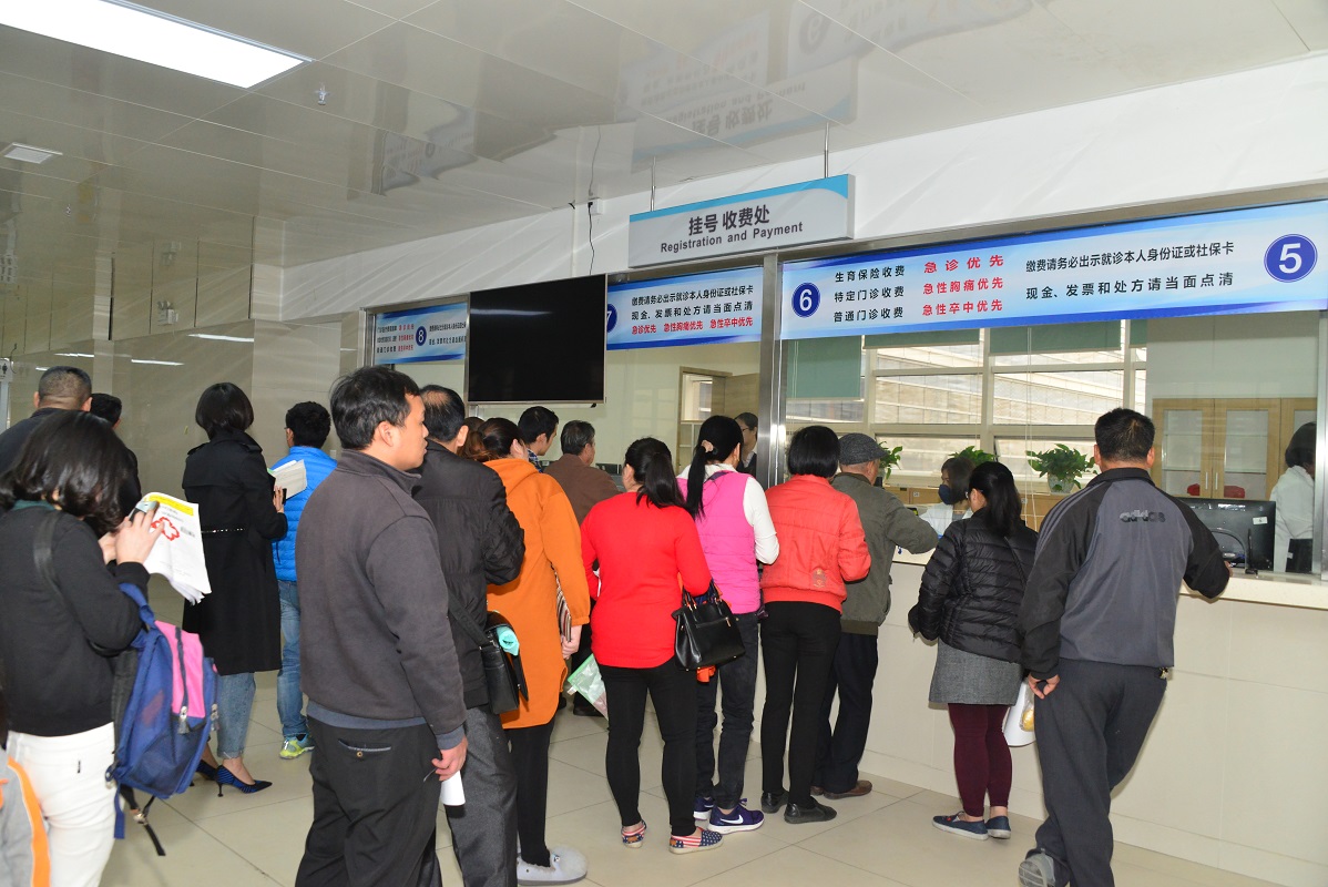 開診首日,新院其中一處掛號(hào)收費(fèi)處排起了長(zhǎng)隊(duì)。