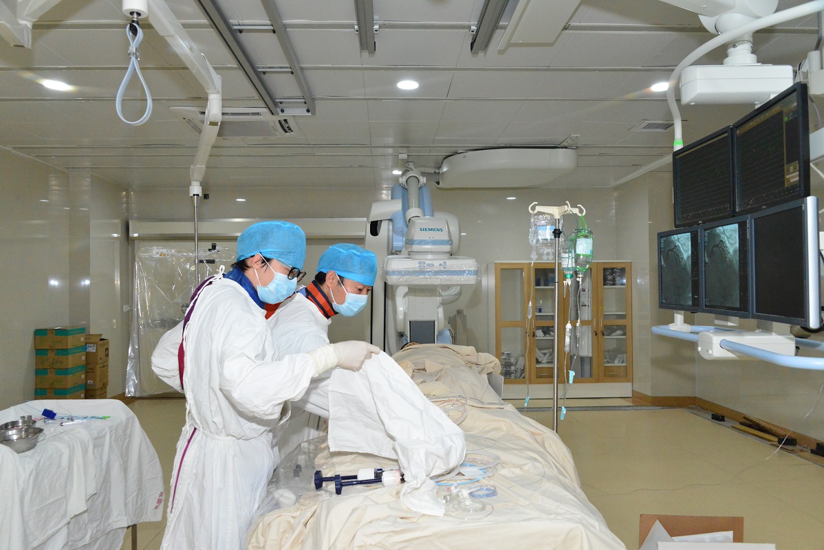 新院全面正常運(yùn)行,圖為開診首日進(jìn)行的介入手術(shù)。