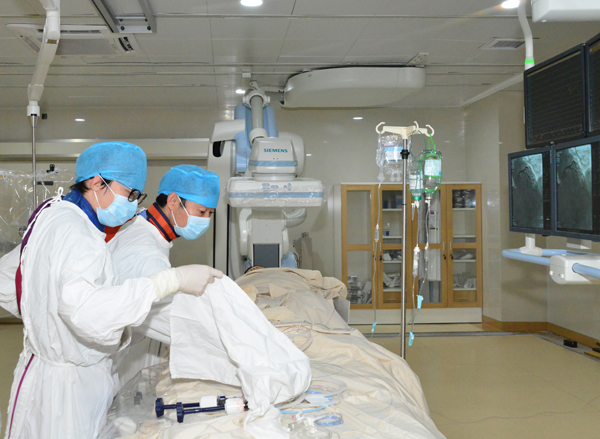 心血管內(nèi)科副主任黎文生以最快的速度為心肌梗死患者開通血管。