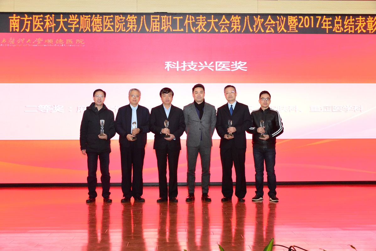 ???????? 副院長龍兆麟宣讀了2017年度醫(yī)院表彰獎勵的通報及科教表彰的決定,出席大會的學(xué)校、醫(yī)院領(lǐng)導(dǎo)為先進集體代表和個人頒發(fā)了獎牌和榮譽證書。