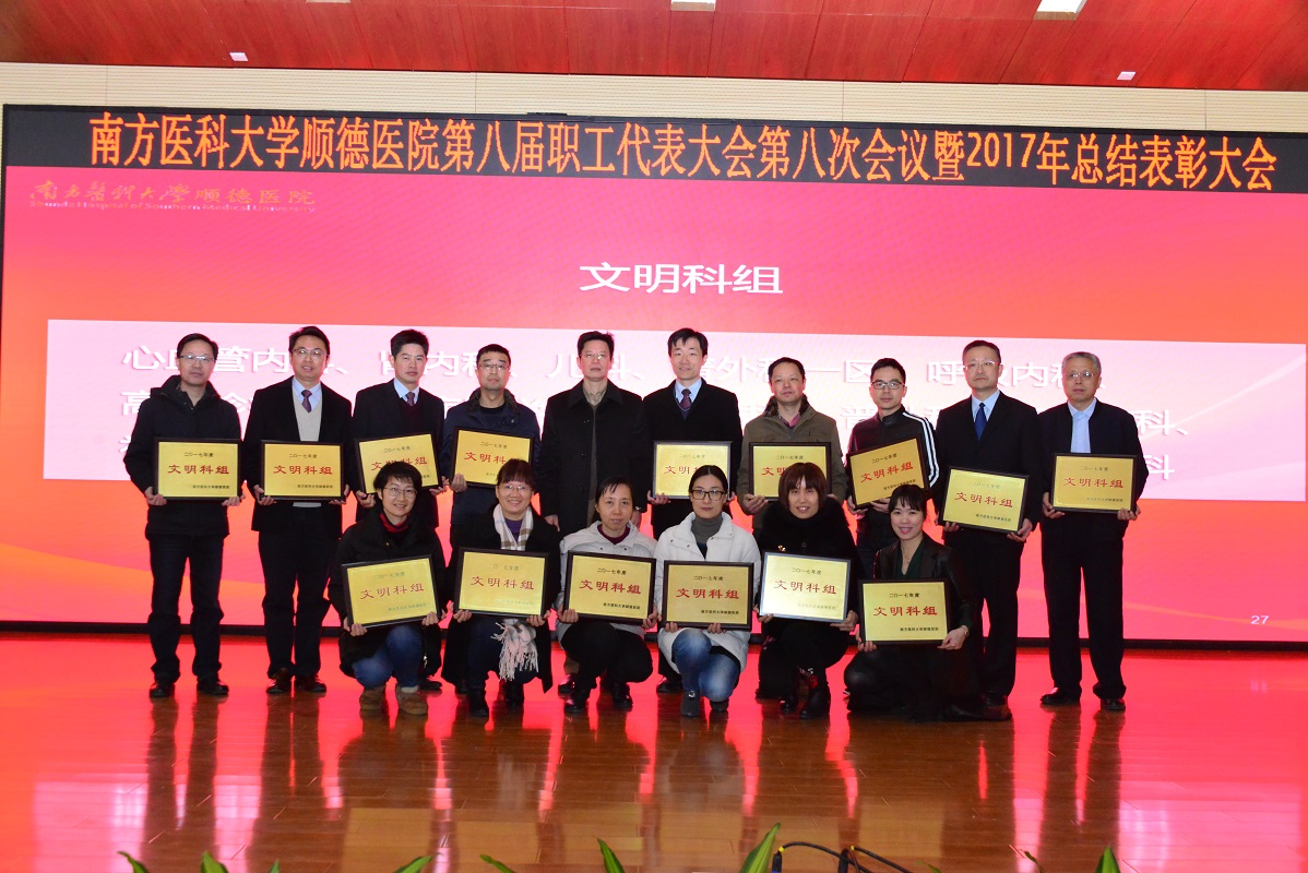 ???????? 2月3日,南方醫(yī)科大學(xué)順德醫(yī)院第八屆職工代表大會第八次會議暨2017年總結(jié)表彰大會在多功能會議中心隆重召開。南方醫(yī)科大學(xué)副校長張玉潤、醫(yī)院管理處副處長譚惠、全體院領(lǐng)導(dǎo)、職工代表、獲獎集體代表及個人等360人參加了會議。大會由工會主席廖玉聯(lián)主持。