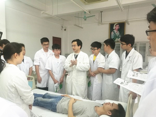 ??????? 首次參加授課的7位老師分別是呼吸內(nèi)科吳穎宇、心血管內(nèi)科何誼婷、神經(jīng)內(nèi)科黎泳欣、消化內(nèi)科翟英姬、血液內(nèi)科董瑞紅、兒科彭麗珠。老師們分成5個(gè)小教班,為學(xué)生講授一般體格檢查、肺部和心臟檢查等內(nèi)容。老師們邊講授邊操作示范,在教學(xué)過(guò)程中將自身的豐富臨床經(jīng)驗(yàn)和人文關(guān)懷理念灌輸給學(xué)生。同學(xué)們拿著書(shū)本邊聆聽(tīng)邊細(xì)看示范,深深地被老師的帶教吸引,并跟著老師的手法訓(xùn)練起來(lái)。窗外陽(yáng)光明媚,教室里彌漫著溫暖和熱情的氛圍,這是老師們對(duì)教學(xué)的熱情,這是學(xué)生們對(duì)知識(shí)的渴望……