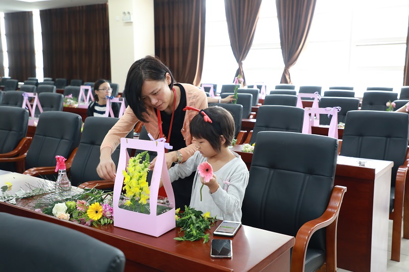 活動在花香中拉開帷幕,特別邀請了專業(yè)老師授課,詳細(xì)講述花材選擇、色彩搭配、養(yǎng)護(hù)等事項,并現(xiàn)場進(jìn)行插花展示。參加者根據(jù)授課內(nèi)容,加入自身對美的理解,在花香間開始制作獨具匠心的“禮物”。在親子專場里,孩子們在媽媽的指導(dǎo)下化身小小“花藝師”,一起動手創(chuàng)作屬于孩子們天馬行空的花藝,場面溫馨,其樂融融。玫瑰的淡雅、桔梗的清新、康乃馨的溫馨,鮮花在巧手中翩翩起舞、馨香綻放,每個作品都被賦予了特殊的情感和內(nèi)涵,展現(xiàn)另一重美感。