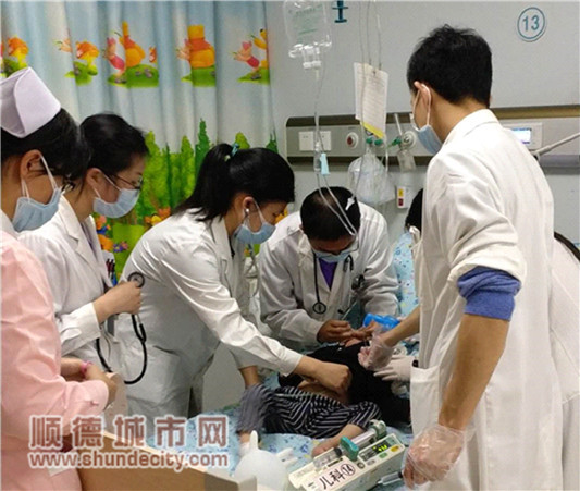 南醫(yī)大順德醫(yī)院急診兒科龍醫(yī)生與急診科的護(hù)士,當(dāng)時(shí)立即做出救治,給患兒進(jìn)行心電監(jiān)護(hù)、給予吸氧治療。據(jù)龍醫(yī)生的了解,患兒有先天性心臟病,已經(jīng)預(yù)約次日到廣州進(jìn)行治療,但由于近期出現(xiàn)了咳嗽、喘息等癥狀,且發(fā)紺時(shí)間已達(dá)到3天,眼看著難以支撐到廣州醫(yī)院的預(yù)約期,便來到了南醫(yī)大順德醫(yī)院求醫(yī)就診。