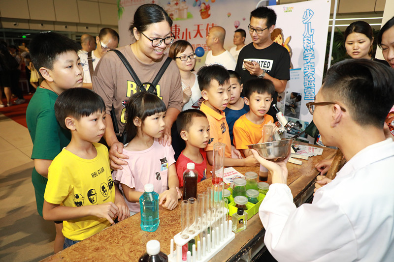 科室實驗講堂開講后,吸引大批小朋友的注意力,老師通過生動有趣的授課方式,帶領小朋友探索科學的奧秘。