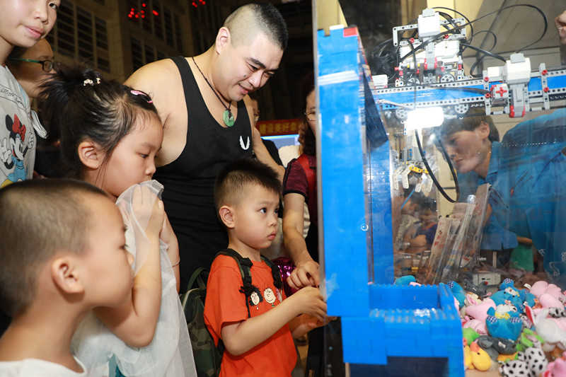 7:30分,由廖玉聯(lián)主席宣布活動正式開始,孩子們紛紛投奔活動攤位游玩,考取智力的樂高專區(qū)、體驗親子間默契的游戲、精彩有趣的科室實驗講堂、利用游戲結合“健康環(huán)保、低碳”概念,吸引著大人小朋友目光,在游玩中收獲健康與環(huán)保的知識。