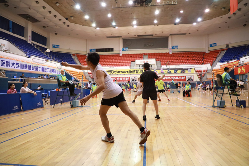 本屆羽毛球團體賽自公布后,得到科室積極參與,比賽匯集臨床、醫(yī)技、行政等部門,比賽分為男雙、女雙及混雙項目。賽場上,運動員們精神抖擻,意氣風(fēng)發(fā),他們靈活跑動,高遠球、大力扣殺、吊球或網(wǎng)前截殺,各種技巧的靈活運用,比賽精彩紛呈,博得現(xiàn)場觀眾陣陣掌聲, 運動員們不到最后一刻決不放棄的競技精神感動著在場每一位觀眾?!凹佑汀眳群奥暣似鸨朔憦厝珗?,有的還帶小朋友到現(xiàn)場,感受體育競技的激情?;祀p比賽中,女選手高度配合,合作無間,巾幗不讓須眉,更顯颯爽英姿。