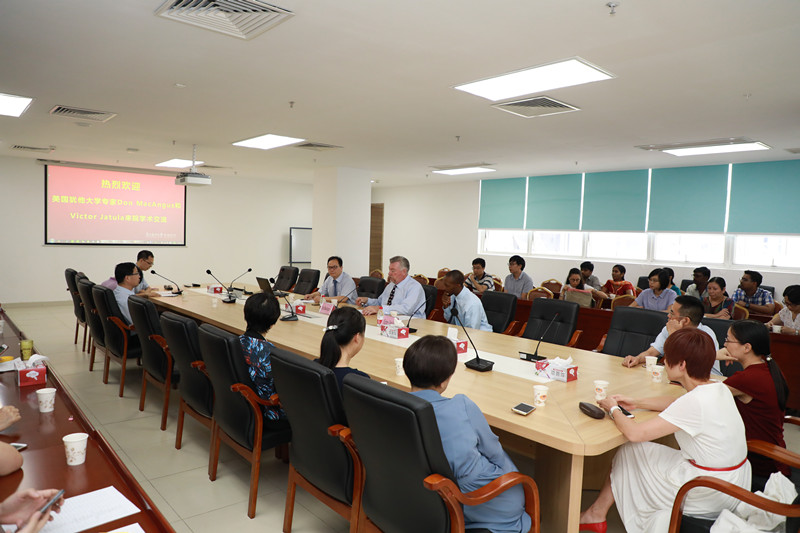 為促進國內外學術交流,加強我院醫(yī)務人員對國外醫(yī)學狀況、醫(yī)患交流及醫(yī)學信息傳播的了解,進一步提升我院醫(yī)療服務質量,6月26日下午,我院邀請到美國猶他大學法律專家Don MacAngus教授和新聞專家Victor Jatula教授來院進行學術交流。講座前,劉瑞林院長親切會見了兩位教授并對他們的到來表示熱烈歡迎。各科室及部分留學生共60余人參加了此次學術講座。