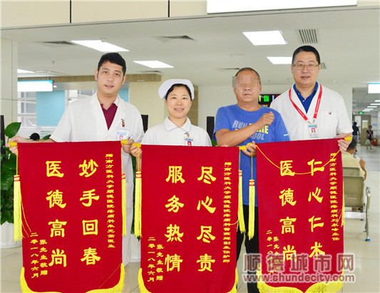 6月19日,市民張先生將錦旗和感謝信交到南方醫(yī)科大學(xué)順德醫(yī)院(順德第一人民醫(yī)院)疼痛科醫(yī)護(hù)人員手中。張先生在信中表達(dá)了自己對醫(yī)院疼痛科醫(yī)護(hù)人員醫(yī)術(shù)的肯定,同時對他們的醫(yī)德給予了高度評價。